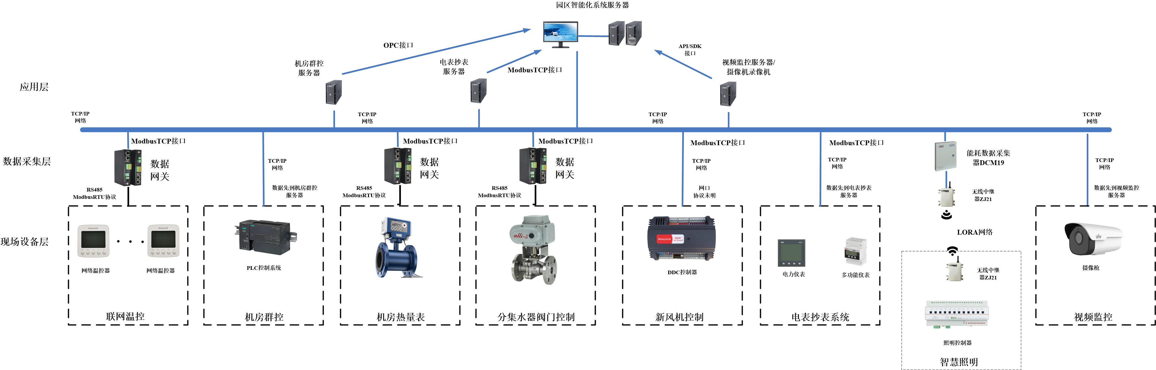 通过9728太阳集团能耗数据采集器,智能采集计量检定生产楼、计量检定实验楼的联网温控器数据与机房的电磁热量表数据,上行接入园区智能化内网,上传至园区综合智慧能源管理平台