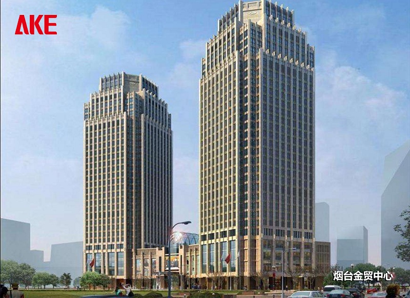 烟台金贸中心处莱山区中心位置,该项目规划容积率7.10,建筑密度37.97%,建筑层数为地上30层,高层塔楼主要布置为办公区,裙房一至四层为商业,在群房4层中庭右侧设有500㎡新闻发布大厅。在造型上,金贸中心构思为简洁的方形体量,南北向规则柱网,南北通透的室内步行街带来活拨的商业氛围,建筑设计的风格定位于典雅的新古典风格。